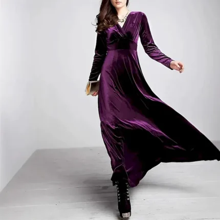 Women’s Midi Dress Velvet Dress Cocktail Dress Elegant Fashion Modern Outdoor Party Party Evening Wear Regular Fit Plain Long Sleeve V Neck Black Wine Blue Green Spring Autumn