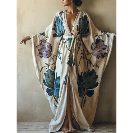 Women’s Long Dress Maxi Dress Boho Dress Casual Dress Swing Dress Summer Dress Vintage Vacation Daily Beach Regular Fit Floral Long Sleeve V Neck Blue Summer Spring Fall