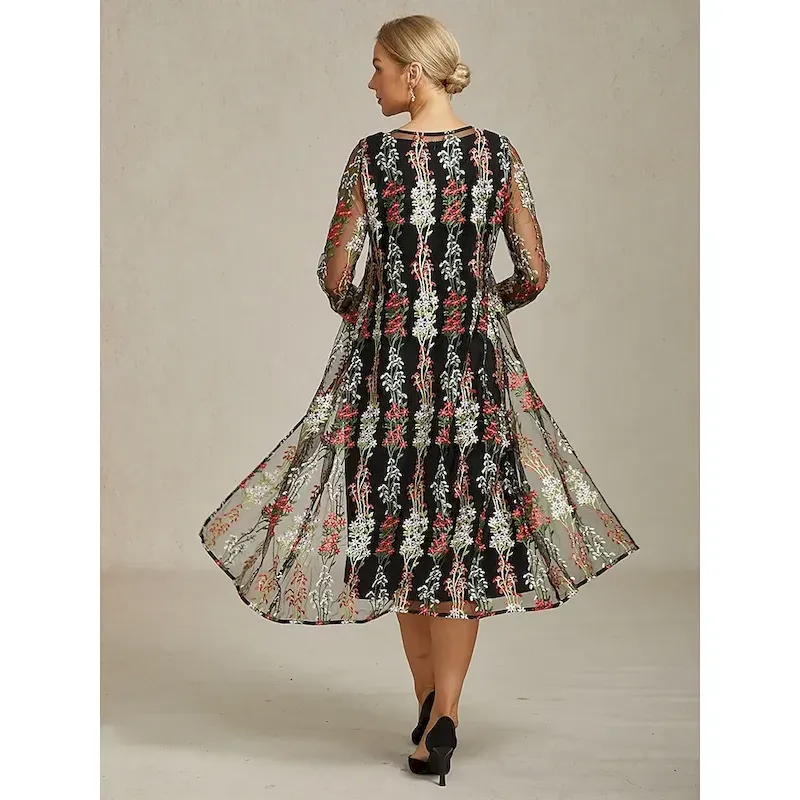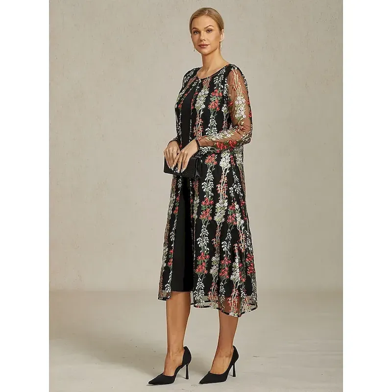 Women’s Jacket Coat Blazer Lace Embroidered Elegant Floral Formal Anniversary Wedding Guest Daily Open Front Long Crewneck Regular Fit Long Sleeve Outerwear Black Spring Fall