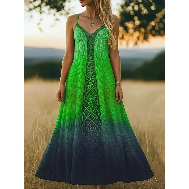 Women’s Maxi Dress Sundress A Line Dress Slip Dress Vacation Casual Beach Regular Fit Ombre Graphic Ethnic Sleeveless V Neck Spaghetti Strap Blue Purple Orange Green Summer Spring Fall