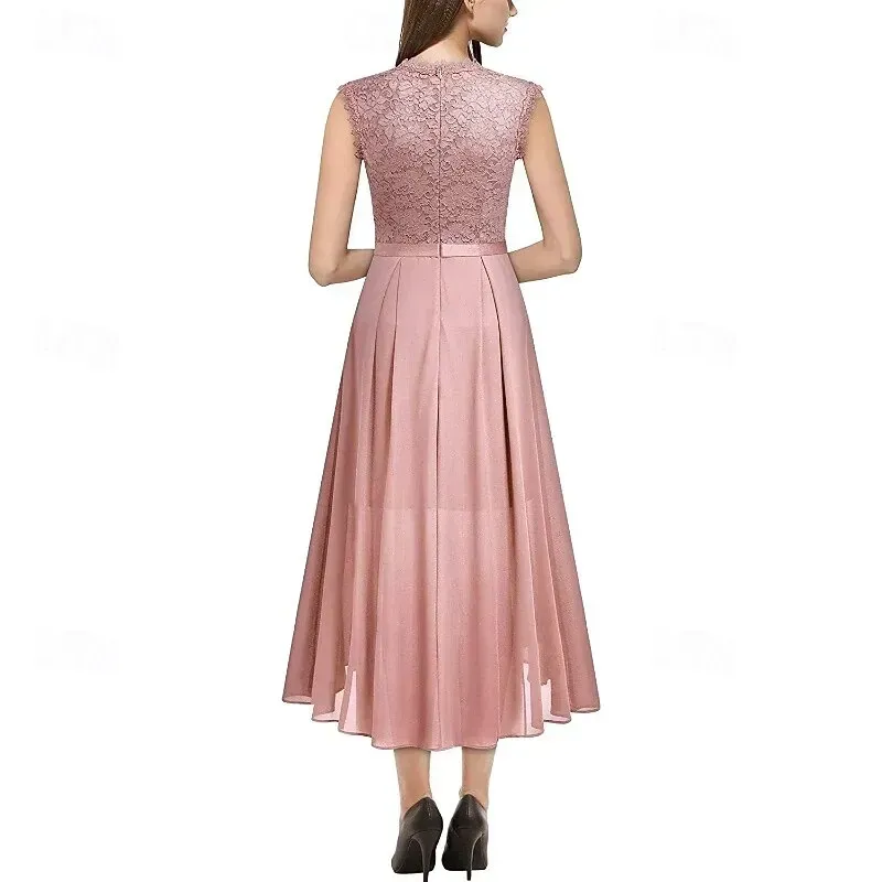 1.Dresses Type: Cocktail Dress Party Dress Chiffon Dress – This type of dresses are most popular in summer, when you wear Chiffon, it makes you feel cooler.,2.Fabric: Polyester3.Gender: Women’s4.Design: Lace – Lace is a delicate fabric made of yarn or thread in an open weblike pattern,made by machine or by hand.Perfect lace dresses to suit every style.,5.Occasion: Party – Fashion dress when attending the party.,6.Dress Length Type: Midi Dress7.Neckline: Crew Neck – Classic design makes people more lovely and young.,8.Sleeve Length: Sleeveless9.Season: Summer