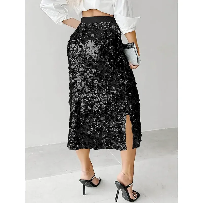 Women’s Skirt Bodycon Elegant Fashion Midi High Waist Skirts Plain Sequins Stretchy Party Street Silver Black Gold Spring Polyester