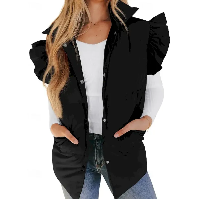 Women’s Vest Warm Comfortable Pocket Buttons Casual Plain Vacation Street Daily Wear Going out Regular Stand Collar Regular Fit Sleeveless Outerwear Black Pink Brown Fall Winter