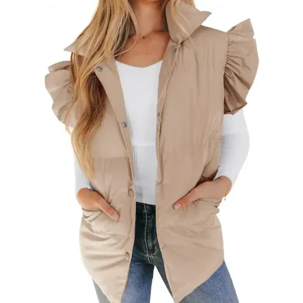 Women’s Vest Warm Comfortable Pocket Buttons Casual Plain Vacation Street Daily Wear Going out Regular Stand Collar Regular Fit Sleeveless Outerwear Black Pink Brown Fall Winter