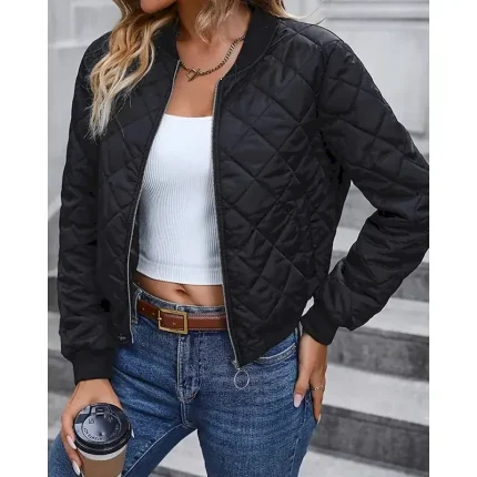 Women’s Puffer Jacket Quilted Jacket Casual Jacket Comfortable Breathable Zipper Pocket Casual Plain Vacation Street Casual Daily Wear Zipper Short Stand Collar Regular Fit Long Sleeve Outerwear